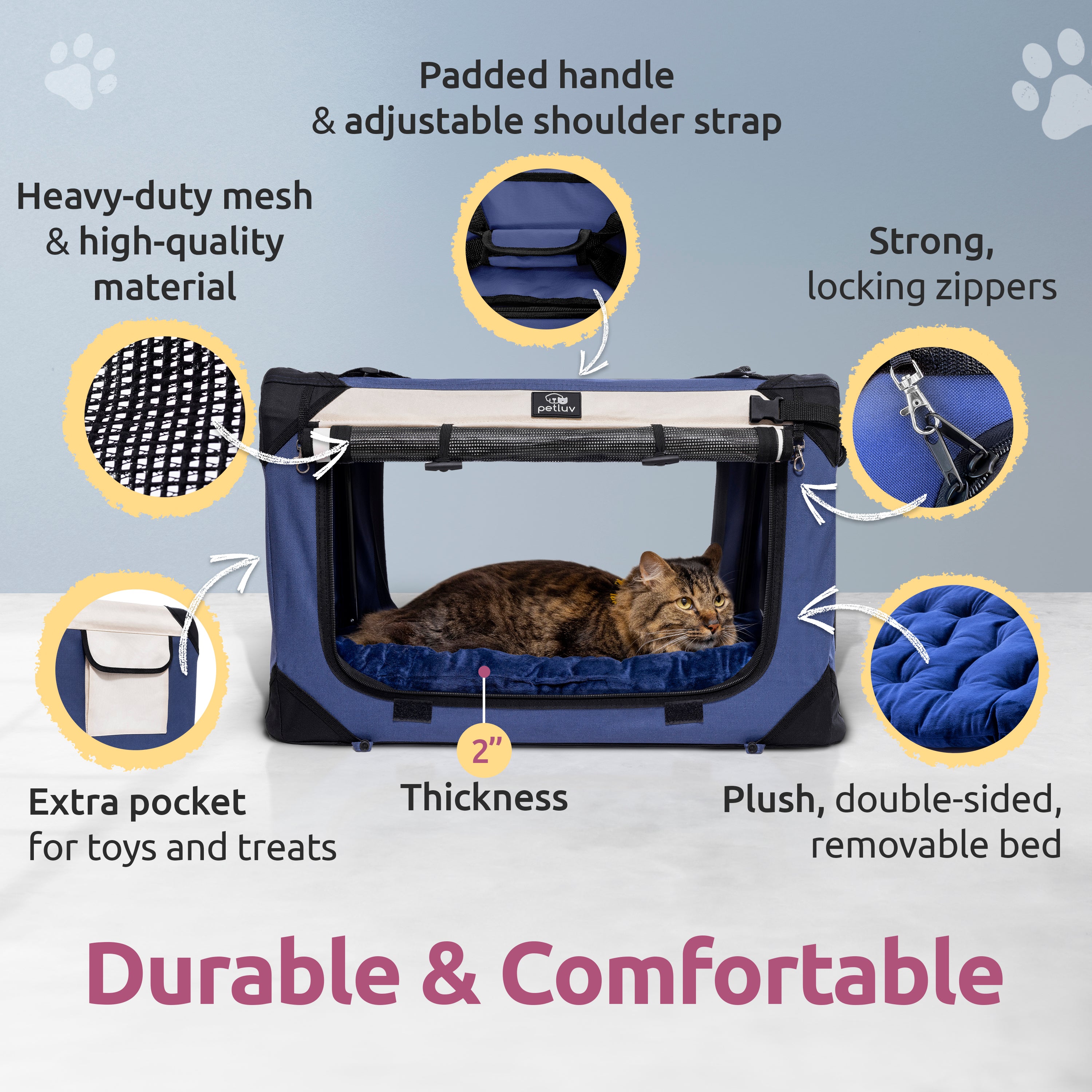 - Premium materials like nylon, canvas, fabric, and thick mesh last for years and resist scratching, clawing, biting, chewing, drooling, and the occasional “accident”