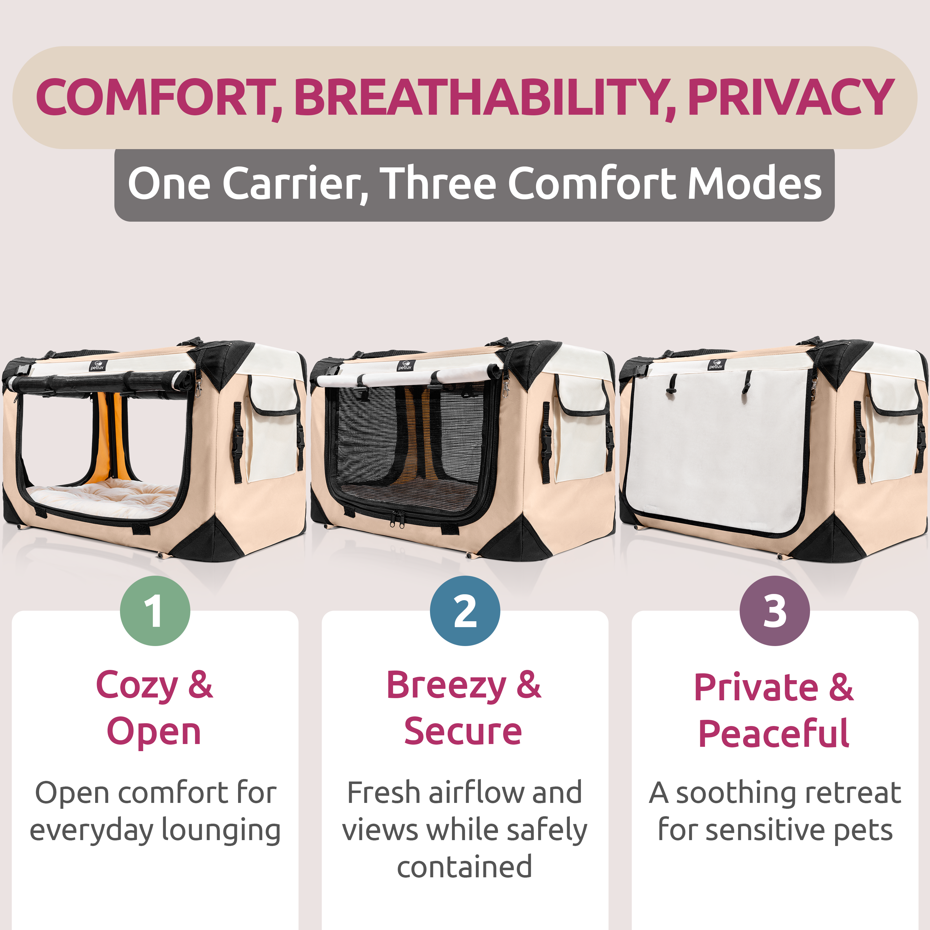 - Our pet carrier doubles as a spa-like pet hotel (their new favorite napping spot!) at home or on the go
