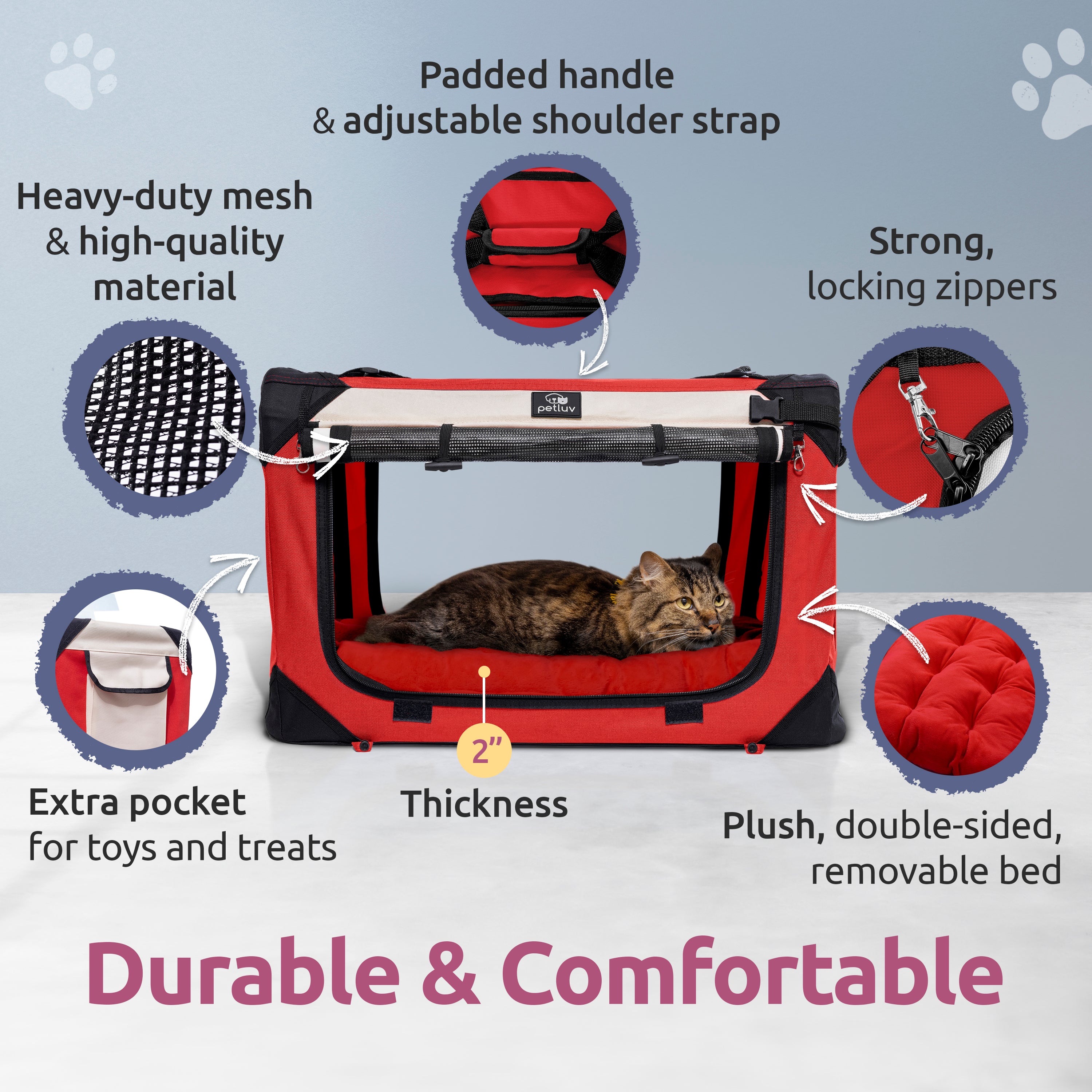 - Padded handle and adjustable straps for comfortable, ergonomic carrying make pet travel a pleasure for you, too!