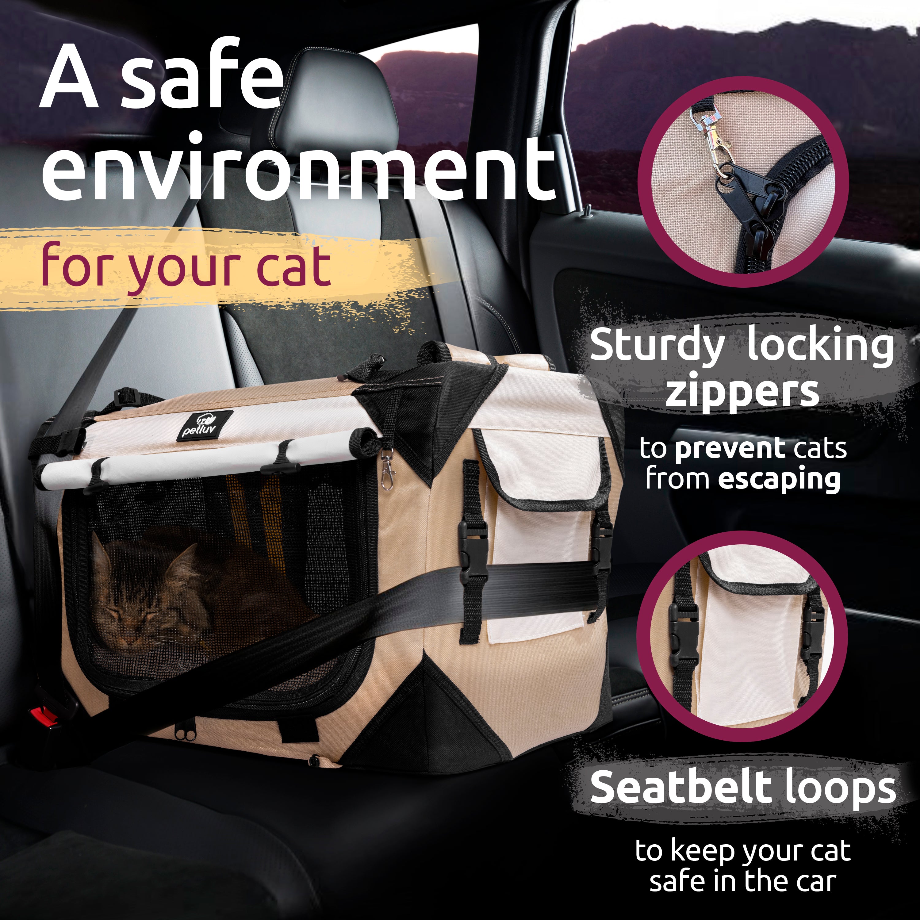 - Seat belt loops to keep your pets in place during car rides
